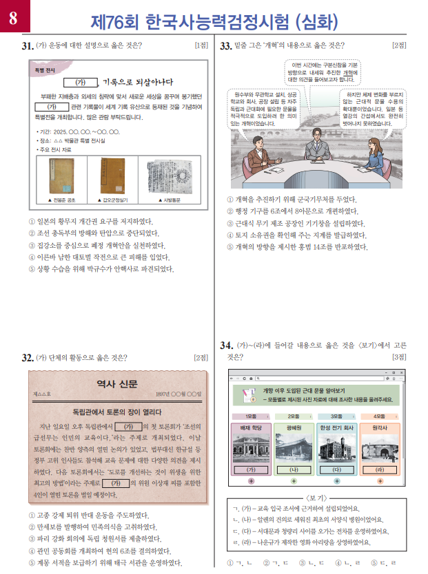 📌 제76회 한국사능력검정시험(심화) 기출문제 및 난이도