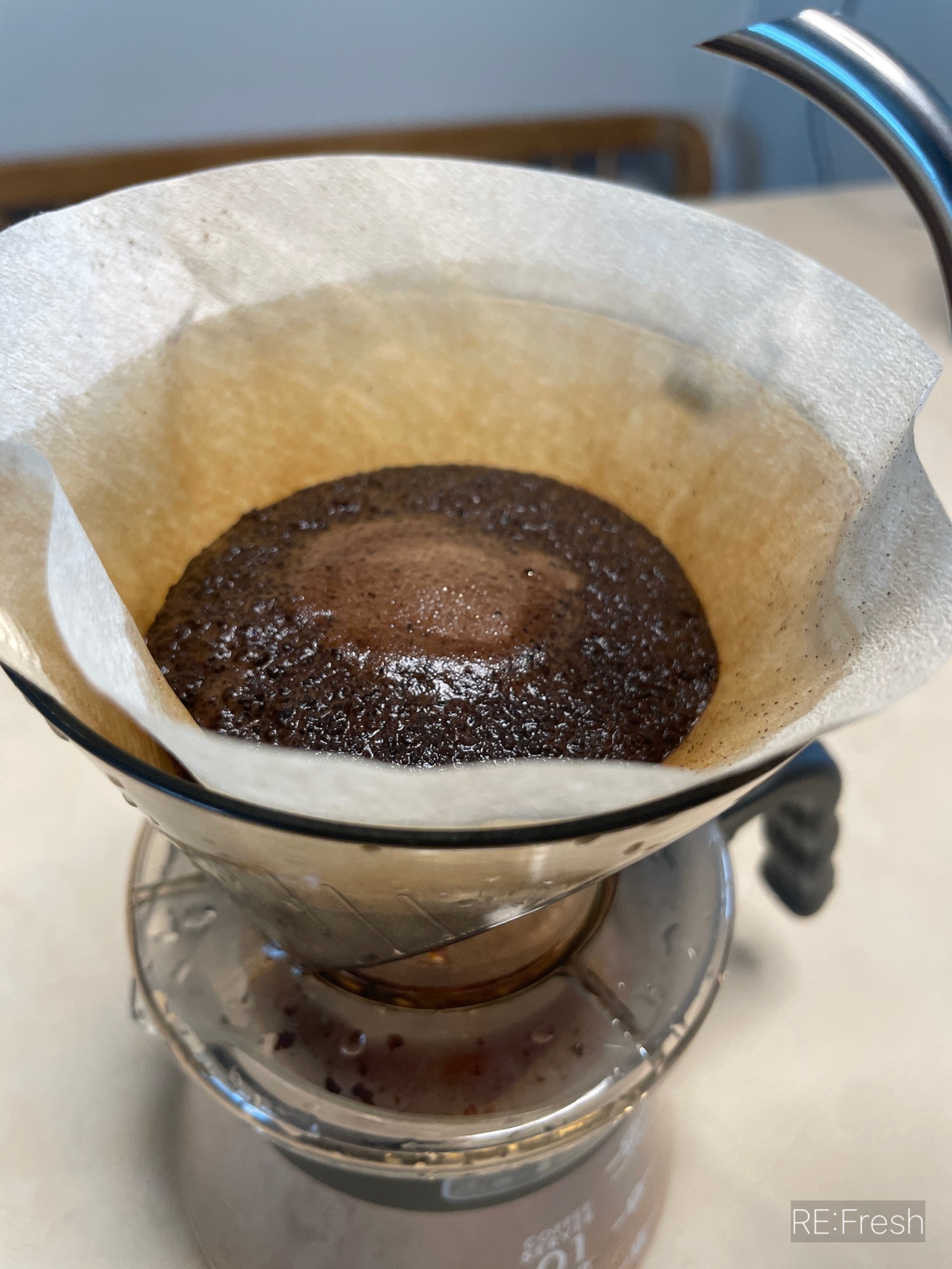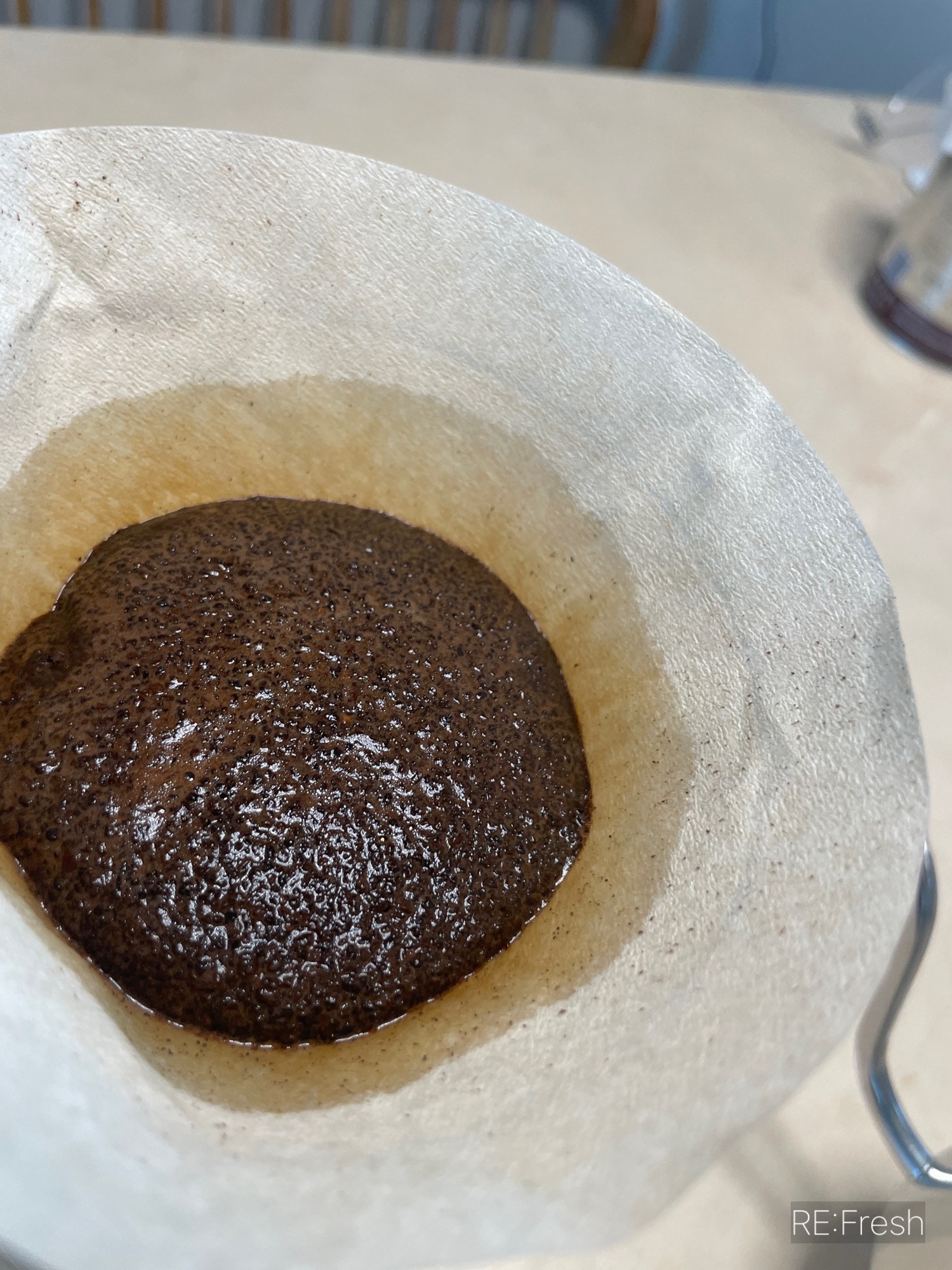 핸드드립 추출하는데 커피향이 집안에 모락!! 신선한 원두인게 에센스하면 원두가 빵처럼 계속 부풀어 오르는게 보이네요.