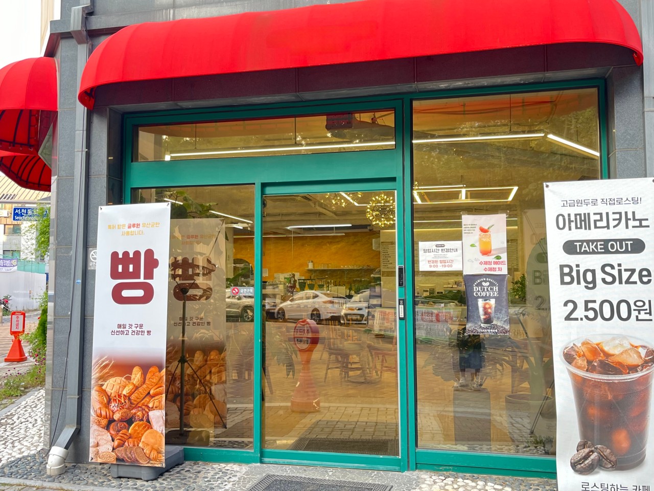 카페에 머물 수 있는 시간이 없어서 이 날은 아메리카노와 아이 간식으로 줄 빵 몇가지, 원두 홀빈 구매해서 돌아갈 예정이었죠. 카페 앞에 들어가는데 아메리카노 포장시 2500원으로 -1500원 할인 판매도 진행중입니다 ^^